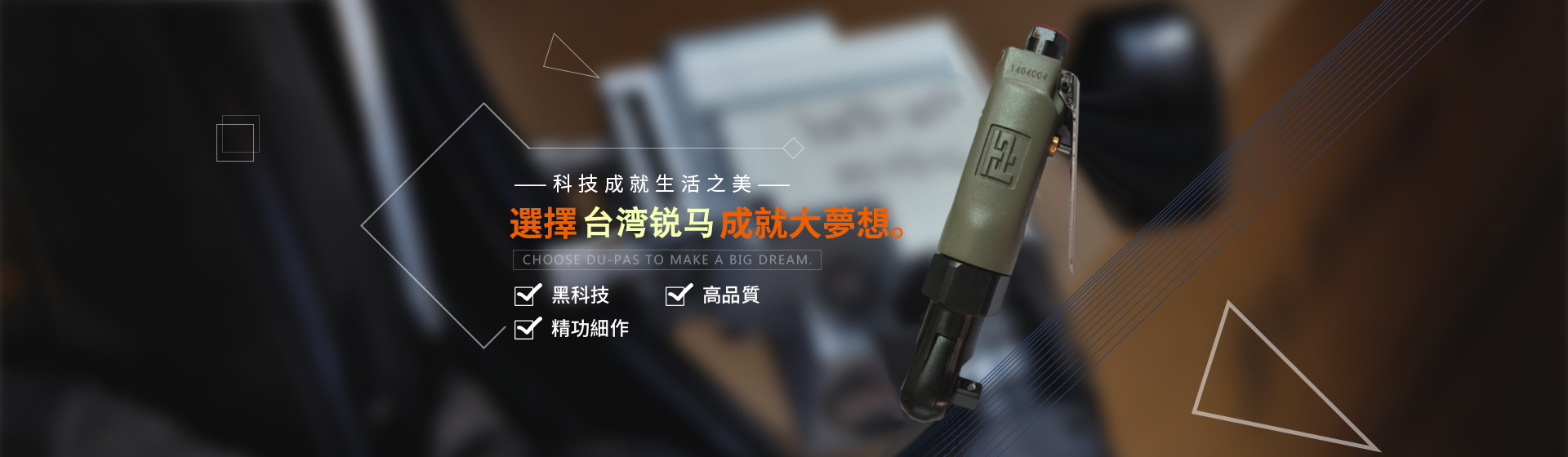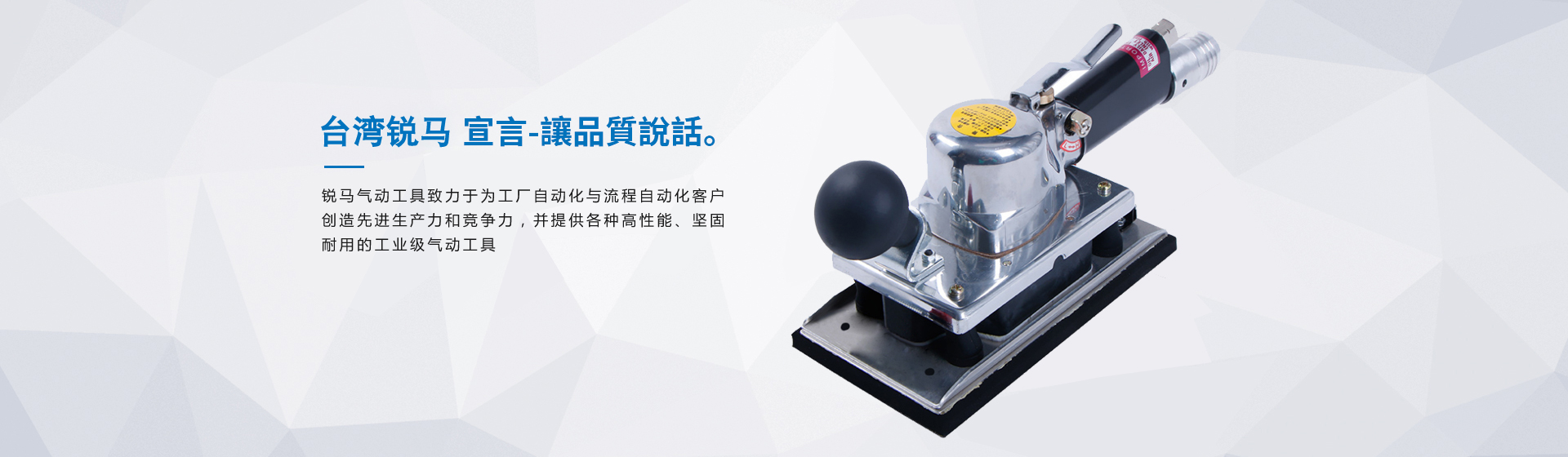 事實(shí)勝于雄辯,服務(wù)創(chuàng)造價(jià)值銳馬氣動(dòng)工具廠家是臺(tái)灣專(zhuān)業(yè)制造氣動(dòng)工具廠"筌誠(chéng)機(jī)械工業(yè)",30多年來(lái)致力于氣動(dòng)/電動(dòng)工具領(lǐng)域之研發(fā),生產(chǎn)和銷(xiāo)售,努力提升本身產(chǎn)品價(jià)值,在臺(tái)灣氣動(dòng)工具制造領(lǐng)域始終處于領(lǐng)先地位,并成功銷(xiāo)往國(guó)際市場(chǎng)。